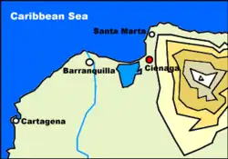 ![]() Location of the municipality and town of Cienaga in the Department of Magdalena | |