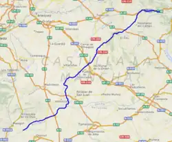 Záncara River flows into the Cigüela from the left near the Ojos del Guadiana, Villarrubia de los Ojos municipal term. There are authors though that claim that it is the Cigüela that flows into the Záncara.[1]