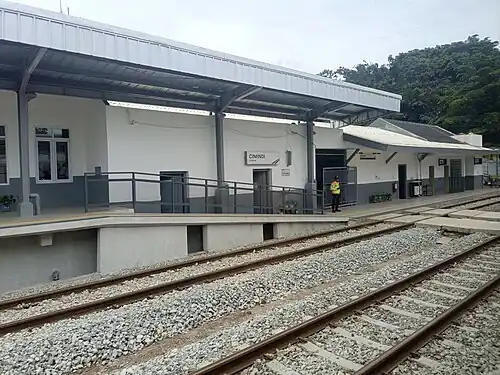 Cimindi Station (CMD) is a class II railway station located in Campaka, Andir, Bandung. The station, which is located at an altitude of +380 meters, is included in the Operation Area II Bandung and is the westernmost station in the city of Bandung.