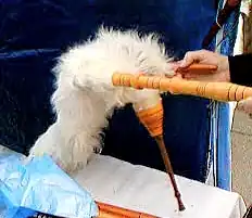 The chanter often has five to eight finger holes, and is sometimes curved at the end. There are two types of cimpoi, one with a single drone and one with two. The bag (burduf) is made of a whole lamb or goat skin and, depending on the region, is made either with the fur in or out. It is sometimes covered with embroidered cloth. The bagpipe can be found in most of Romania apart from the central, northern and eastern parts of Transylvania, but at present (the early 21st century) is only played by a few elderly people. It is on the road to extinction, and there are only two makers left who know to make it in the traditional way.