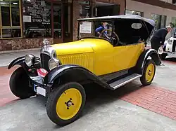 The first models of the French firm arrived in Argentina at the beginning of the 1920s; imported individually or, more rarely, by request, some Type A 10HP and Type B2 vehicles entered the country. Only in 1925 did the firm Vengerow y Cía. In charge of its founder Marcos Vengerow and his sons León and Jack, the business got representation of Citroën (and Voisin) for Argentina. This firm, which had its showroom at 1165 Montevideo Street, began by importing the 5CV, commonly known as Treflé (clover leaf) due to the particular arrangement of its three seats. This model became very famous in those years in Argentina because several Argentine movie stars drove Treflé models, some of them were Sofía Bozan, Iris Marga, Pepe Arias, Florencio Parravicini were just some of the artists that helped the 5CV being recognisable to public.[4] Other body versions of the 5CV could also be purchased, such as the 2-seater Torpedo and the 2-seater Cabriolet with the particular "boat tail".[5]
