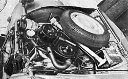 At the end of 1970, Citroën Argentina incorporated a completely new model into its production, the Ami 8 Club, with identical mechanics to the 3CV (second assembly) except for the carburetor, which was double body (Solex 26–35 CSIC) that powered to 35 HP. The press described Ami 8 as a "transition car", however, it was not like that since it competed directly with models from the medium/small range such as the Renault 6 or the Fiat 128.[8] Citroën de Argentina only manufactured the break (station wagon) version of the Ami 8, the club, which unlike its French pair had front drum brakes. In the frame or chassis, it incorporates a stabilizer bar (anti-roll) in the front, suspension cylinders, and springs with a larger diameter than in the 2CV and 3CV, the inertia beaters continued and the wheel bearings were larger (from 35x72x27mm. to 36x76x29mm.) These features would be incorporated into the 3CV in 1971 with the exception of the stabilizer bar. The Ami 8 had a top speed of 113 km/h.[8]