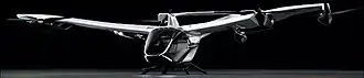 | Updated configuration in September 2021: main wing with six ductless rotors, twin boom tail with two control rotors | |