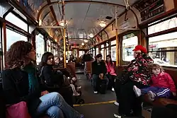 The City Circle route is operated with heritage W class trams, restored to original condition as part of the W8 upgrade. As of 2020, these are the only W-class trams on the system, and there are no plans to retire them. The City Circle trams originally sported a unique maroon livery promoting the service, however as part of the W8 upgrade the trams were restored back to their original green and cream livery. Until 2014, the City Circle was one of several routes to run W-class trams (30, 78 and 79) but the remaining routes controversially had their W-class trams removed, mostly replaced by A class. Trams display the route number 35.[19][20] The City Circle operates at a headway of 12 minutes in the clockwise direction, with the service taking approximately 60 minutes to complete a loop. An average of three million passengers use the service every year, with each tram circling the city 9 times a day, or 12 times when the tram operates to 21:00.[13]