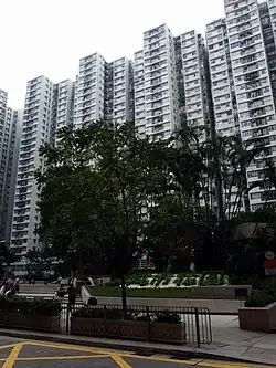 City Garden is located at 233 Electric Road, Fortress Hill, Hong Kong. It is located beside Victoria Harbour. It consists of 14 residential buildings with 28 levels each. Phase 1 includes Block 1–6 while phase 2 includes Block 7–14. There are 2,393 residential units which accommodate more than 9,000 residents. City Garden's lot is approximately 400,000 square feet (37,000 m2) in size. City Garden Road is a two-lane road which serves as the main thoroughfare through City Garden.[1]
