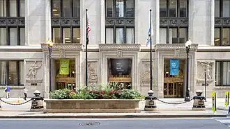 The City Hall-County Building, commonly known as City Hall, is a 12-story building in Chicago, Illinois, that houses the seats of government of the City of Chicago and Cook County.[1][2] The building's west side (City Hall, 121 N. LaSalle St.)[3] holds the offices of the mayor, city clerk, and city treasurer; some city departments; offices of alderpersons of Chicago's 50 wards; and the Chicago City Council's chambers.[4][5][6] The building's east side (County Building, 118 N. Clark St.)[7] houses offices of the Government of Cook County, including the Cook County Board of Commissioners' chambers.[8]