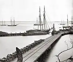 The waterfront of City Point, Virginia (present-day Hopewell) during the winter of 1864–1865