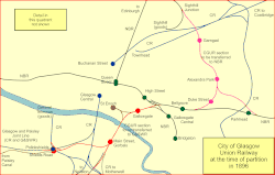 - ^ The western extremity was later altered to Shields Junction, a short distance west of West Street. The alignment east of Glasgow High Street was altered to join the NBR Coatbridge - College line at College West Junction and leave it again at Bellgrove East Junction.