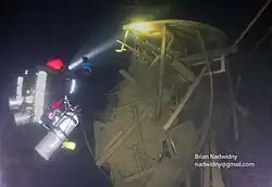 In September 1997, several members of the Cambrian Foundation successfully conducted two dives to City of Ainsworth. No previous attempts to dive down to the wreck had been conducted due to its extreme depth, the low visibility in the water and the dangerous surface conditions on Kootenay Lake. The dive team had to decompress for 75 minutes after spending only 10 minutes at the bottom, but they managed to film City of Ainsworth and reported that she was mostly intact and sitting upright.[4]