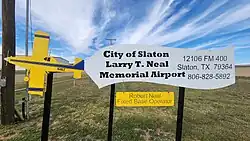 City of Slaton/Larry T. Neal Memorial Airport (formerly Slaton Municipal Airport) is a General Aviation airport located 3.4 mi (5.5 km) north of Slaton, Texas.[1][2]