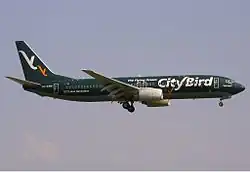 CityBird S.A. was an airline founded in 1996 and based in Building 117D, Melsbroek Air Base in Zaventem.[1] The airline filed for bankruptcy in October 2001. Thomas Cook Airlines Belgium considered buying them out of bankruptcy, but later pulled out.