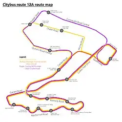 Citybus route 12A is a bus route on Hong Kong Island. Operated by Citybus, it is a loop route originating from Admiralty (Tamar Street), passing through Cotton Tree Drive, MacDonnell Road, Kennedy Road and Central before returning to Admiralty.