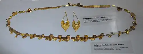 Goldsmithery contributed for Póvoa de Varzim being a reference for proto-historical archaeology in North-western Iberian Peninsula. Namely, with the finding of some complete jewellery: the Earrings of Laundos and the articulated necklace and earrings of Estela. In the proper Cividade, some certifications of works in gold and silver had been collected by Rocha Peixoto. In all the mountain range of Rates, the ancient mining explorations are visible: Castro and Roman ones, given that these hills possessed the essential gold and silver used for jewellery production.
