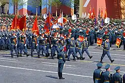 The academy maintains a cadet military band, which was founded on 1 September 1999 on the basis of a directive by Minister Sergey Shoygu on 16 July of that year.[7] Cadets of the academy are annual participants in the Moscow Victory Day Parade on Red Square, representing all servicemen of the EMERCOM in a single parade battalion. Originally for the first time since 2002, cadets from the Civil Defense Academy of the Ministry of Emergency Situations were not to take part in the 2018 Moscow Victory Day Parade, while EMERCOM detachments continued to march past in other major parades nationwide, however, the decision was rescinded.[8][9][10][11][12]