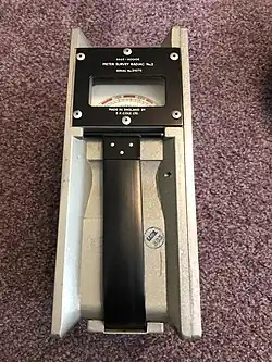 The British "Radiac Survey Meter No. 2"[5] dates from 1953 to 1956, and required now-obsolete 15 and 30 volt high voltage batteries and a 1.5 volt standard cell, the latter used to power the valve heater filaments and meter illumination bulb. There was also a training unit,[6] which measured 0–300 mR/h, and ran on four 30 volt batteries plus one 1.5 V cell for the filaments. This meter used a large Geiger–Müller tube, as opposed to the ionisation chamber of the RSM No. 2.