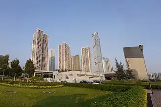 Clague Garden Estate (Chinese: 祈德尊新邨) is a Flat-for-Sale Scheme public housing estate in Tsuen Wan, New Territories, Hong Kong located on reclaimed land near Tsuen Wan Pier and MTR Tsuen Wan West station.[2] It now consists of three residential buildings, built in 1989 by Hong Kong Housing Society. It offers 552 flats for rent and 926 under the Flat-for-Sale Scheme. Many early residents were resettled from the Four Seasons Estate, a nearby public housing estate that was demolished in 1990.[1]