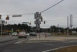 SR 155 begins at an intersection with US 19/US 41/SR 3/SR 7 south of Griffin, in Spalding County. This also marks the southern terminus of US 19 Bus./US 41 Bus., which travel concurrently with SR 155 to the northeast to an intersection with SR 16 in the central part of the city. They cross a Norfolk Southern Railway until SR 155 departs to the east. It heads northeast, and turns north on McDonough Road. It heads northward and enters Henry County.[1]