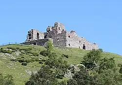 - Glenbuchat Castle, four miles west of Kildrummy, Aberdeenshire, dates from 1590.[5] It was seized by James VI of Scotland during Huntly's rising of 1594.[5] Brigadier-General John Gordon of Glenbuchat fought for the Jacobites in both the risings of 1715 and 1745, leading the Gordons and Farquharsons at the Battle of Culloden.[5] He escaped to Norway and died in France.[5] The castle was a ruin by 1738 and was sold to the Duff Earl of Fife.[5] It was then replaced with Glenbuchat House and the old castle is now in the care of Historic Scotland.[5]
