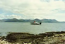 ![]() The Isle of Arran and the CalMac ferry from the slipway at Claonaig | |