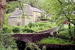 Running through the village is Clapham Beck, fed from Fell Beck which starts on the slopes of Ingleborough and sinks into Gaping Gill, England's highest waterfall, where Fell Beck drops 110 metres vertically into a pothole, and exits via Ingleborough Cave into Clapham Beck. The beck feeds into the River Lune via the River Wenning. The beck is crossed by four bridges in the village (two footbridges: Brokken Bridge and Mafeking Bridge, and two road bridges).