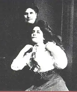 According to scholar Nina Warnke, Young became "the most beloved Yiddish actress in Poland and Russia during the 1910s" – popular not only among Yiddish-speaking operetta audiences but also among non-Jewish Poles and Russians.[2] Yiddish intellectuals and literati in Warsaw, including critics A. Mukdoyni (pseudonym of Alexander Kappel), Noach Prilutski, Dovid Frishman, and I. L. Peretz, held her acting in high esteem, despite their general ambivalence about the influx of American plays and actors into Europe at that time.[3] Although not all of the plays in her repertoire were set in the United States, she cultivated a profile of an American playing American characters.[4] Young's husband Boas, in his memoir Mayn Lebn (1950), recalled the broad appeal of the musical Di amerikanerin among Warsaw's diverse Jewish population: