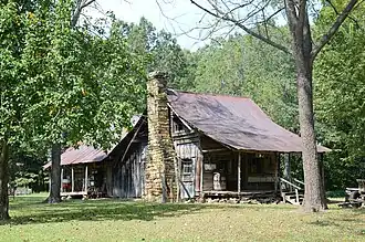 The Clark–King House is a historic house in Stone County, Arkansas, just outside the city limits of Mountain View. Located near the end of County Road 146, it is a single-story log structure with two pens, one built c. 1885 and the other c. 1889. The main (east-facing) facade has a porch extending across the front, under the gable roof that shelters the original pen. The breezeway between the pens has been enclosed with board and batten siding. The first pen was built by P.C. Clark; the second by Rev. Jacob King, a prominent local circuit preacher of the period.[2]