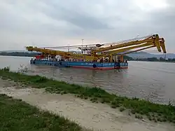 Clark Ádám is a crane vessel, specifically a floating sheerleg, built in 1980 in Budapest, Hungary, by the Hungarian Shipyards and Crane Factory (Hungarian: Magyar Hajó- és Darugyár; MHD) Angyalföld Division. It originally had a lifting capacity of 120 metric tons, gradually raised to 200 tons by 2006,[3] making it one of the largest in lifting capacity on Central European rivers.[4][5] It is mainly used for building bridges, but is also commissioned to assist salvage operations, as well as to launch hydrofoils. It has rescued several ships; in 2019 it raised the sunken Hableány from the Danube at Budapest. The vessel is named after Scottish engineer Adam Clark (1811–1866).[2]