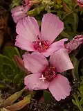 Clarkia species play important roles in their local ecosystems, as they provide habitat for native pollinators. Some pollinators even rely on Clarkia exclusively, such as the "clarkia bee".[4] They are also used as host plants by some species as caterpillars, such as sphingid moths.[5]