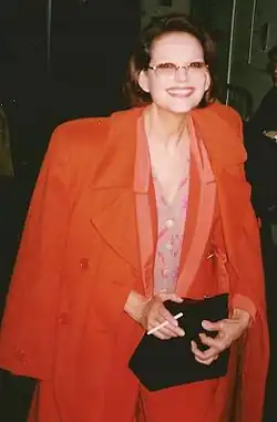 In 1990, Cardinale starred opposite Bruno Cremer in Squitieri's Atto di dolore, and appeared in the Morocco-set Soviet-Italian production, La battaglia dei tre tamburi di fuoco.[119] In 1991, Cardinale featured alongside Richard Berry and Omar Sharif in Henri Verneuil's Mayrig (meaning "mother"), a film about the struggles of an Armenian family that emigrates to Marseille from Turkey after the Armenian genocide of 1915. Such was the success of the film that Verneuil made a sequel the following year, 588, rue Paradis, also featuring the cast. Cardinale was praised by critics for her role as the mother; the Armenian General Benevolent Union of America noted the "flawless performance of these intrepid actors, especially of Claudia Cardinale".[120] In 1993, Cardinale won the Leone d'oro alla carriera award at the Venice Film Festival, in which she was honoured along with Roman Polanski, Robert De Niro, and Steven Spielberg. Cardinale agreed to reunite with Blake Edwards, Herbert Lom, and Burt Kwouk to celebrate the 30th anniversary of The Pink Panther by making Son of the Pink Panther. It was Edward's last film, but was a critical and commercial failure, with critics despairing at the "painfully unfunny script" and the performance of Roberto Benigni as Clouseau, which earned him the Razzie Award for Worst New Star. As of July 2015, it has a rating of just 6% on Rotten Tomatoes based on 34 reviews.[121] In 1994, Cardinale had a role in Charlotte Dubreuil's Elles ne pensent qu'à ça..., and the following year appeared in the French TV serial 10-07: L'affaire Zeus.[122]