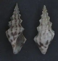 | Two views of a shell of Clavus flammulatus (museum specimens at Naturalis Biodiversity Center) | |
