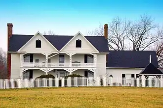 Claymont Hill, also known as the Albert L. Hendrix House, is a historic home located near Ronda, Wilkes County, North Carolina. It was built in 1870, and is a large two-story, ell-shaped I-house with multiple gables and with two-story porches on three elevations. At its core is a much earlier log structure. It has Gothic Revival style design elements in the gables and sawnwork trim. Also on the property is a contributing former detached kitchen.[2]