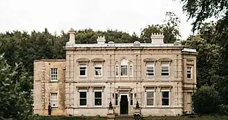 The hall is sited in a 13 acres (5.3 ha) estate,[3] with a walled-garden to the north, and outbuildings including an 1802 coach-house designed by William Fowler.[2] Nikolaus Pevsner, on his visit, noted that the estate has been "deparked", and comments that Mr. Maw's pre-1855 house was a "Georgian box".[2]