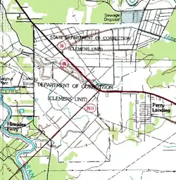 Clemens Unit (CN) is a prison farm of the Texas Department of Criminal Justice (TDCJ) in unincorporated Brazoria County, Texas,[1] in Greater Houston. The prison, with about 8,008 acres (3,241 ha), is located at the intersection of Farm to Market Road 2004 and Texas State Highway 36.[2] The prison, in the Texas Gulf Coast region,[3] is in proximity to the City of Brazoria,[4] and it is in proximity to the Velasco community, now a part of Freeport.[5] The prison is situated south of Houston.[3]