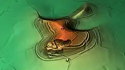 Archaeological features include a large univallate Iron Age hill fort, two bowl barrows and medieval strip lynchets.[4] In 1812,[5] local antiquarian Sir Richard Hoare attempted to excavate the mound at the top of the hill – leaving a hole which is still visible – but found that it had been looted by grave robbers.[6]