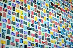 Eyland was best known for his work that transformed public spaces[5] and his drawings and paintings done on the small 3 x 5 index card format. In 2005 his installation Untitled, consisting of over 1000 paintings, opened at the Winnipeg's Millennium Library.[6][7] In 2014, he installed at the Halifax Central Library whereLibrary Cards is behind the front desk and Book Shelf Paintings is on the fifth floor.[8][4] He also has a smaller public art commission of 600 painting titled Sculptures in Landscapes at the Meadows branch of the Edmonton Public Library.[9]