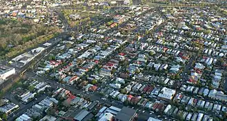 ![]() Aerial view of Clifton Hill looking north to Queens Parade and Merri Creek. Hoddle Street is the main road on the left and Darling Gardens is far left. | |||||||||||||||