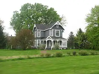 Clinton F. Hesler Farm, also known as Clearview Farm, is a historic home and farm and national historic district located at Millcreek Township, Fountain County, Indiana. The farmhouse was built in 1896, and is a two-story, "T"-plan, Queen Anne style balloon frame dwelling. It features steep gable roofs, a wraparound porch, fishscale shingles, and elaborate millwork. Also on the property are the contributing horse barn (1887), cattle barn (c. 1910), corn crib (c. 1910), summerhouse (1896), and cast-iron fence (1896).[2]: 2, 5