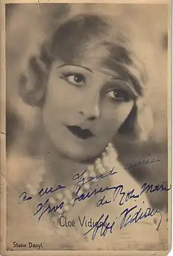 Cloé Vidiane was a French singer who performed in operetta, cabaret shows and films in Paris in the 1920s and 1930s. She played the title role, alternating with Madeline Masse, in the Paris production of Rose-Marie in 1927, which ran for a record 1,250 performances.[1][2]