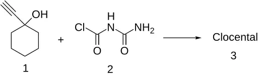 Clocental was first prepared by the acylation of 1-ethynylcyclohexanol with allophanyl chloride.[3]