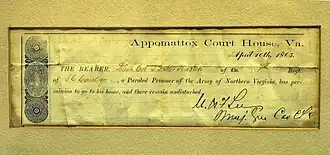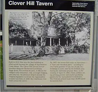 7. ^ "Clover Hill Tavern - The printing of Paroles for the Confederate Army of Northern Virginia". Archived from the original on August 11, 2007. Retrieved January 26, 2009.