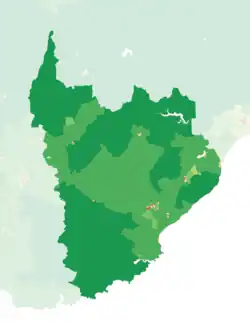| • Land | 6,334.54 km2 (2,445.78 sq mi) |