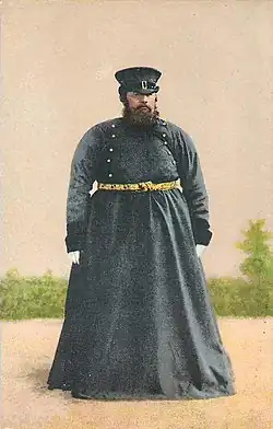 In early coaches he sat on a built-in compartment called a boot, bracing his feet on a footrest called a footboard. He was often pictured wearing a box coat or box jacket, a heavy overcoat with or without shoulder capes, double-breasted, with fitted waist and wide lapels; its name derives from its use by coachmen riding on the box seat, exposed to all kinds of weather. An ornamented, often fringed cloth called a hammercloth might have hung over the coachman's seat, especially of a ceremonial coach. He could be seen taking refreshments at a type of public house called a watering house, which also provided water for horses.