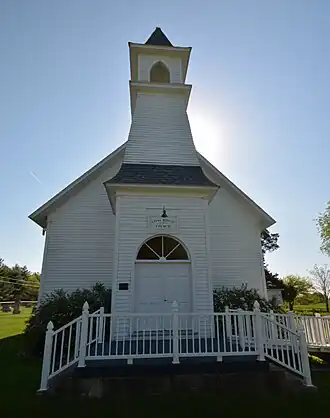 Coal Ridge Baptist Church and Cemetery (also known as Coal Ridge Church; Coal Ridge Community Church; Coal Ridge Church Museum) is a historic church at 1034 IA S71 in Knoxville, Iowa that was built in 1909. It replaced an 1860-built church that was destroyed in a fire on October 11, 1908, and it served the community of Coalport, which is long gone. Coalport, built in the floodplain of the Des Moines River, disappeared under man-made Lake Red Rock when the river was dammed in 1969. The church and cemetery are on a hill above the lake.[2]