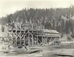 In 1930, 45 miners died in the number 4 mine explosion.[16] After this, production resumed but on a smaller scale than previously.[28] The railways purchased virtually all the coal extracted.[29] About 800 metres (0.5 mi) west of present Coalmont at Upper town,[30] a spur entered the mine yard, where the power plant, tipple, and screens were located.[31] During that decade, a miner's work week averaged two to three days in summer and three to four days in winter.[32]