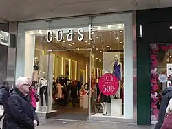 Coast was owned by Aurora Fashions, along with fashion brands Warehouse and Oasis.[2] Aurora in turn was owned by the Icelandic Kaupthing Bank, and had been in administration for some time, with the administrators looking for potential buyers, with a possible valuation of not more than £100 million for Coast, Warehouse, and Oasis reported in November 2016.[3] In April 2017, The Daily Telegraph reported that the three brands employ up to 5,000 people and were attracting interest from private equity, who would likely close some of the stores.[4] Retail Week speculated that the future for brands like Coast will be in department store concessions and online, rather than stand-alone stores.[5]