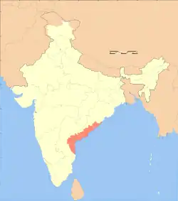 The coastline of Andhra Pradesh is located on the southeastern coast of the Indian Peninsula in the Bay of Bengal and is part of the Northern Circars. With a length of 975 km (606 mi), it has the second longest coastline in India after Gujarat (third as per some estimates). The coastal corridor boasts several ports, harbors, vast stretches of sandy beaches, wildlife and bird sanctuaries, as well as fresh water lakes and estuaries.[1][2]