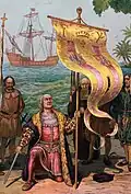 The coat of arms of Puerto Rico was first granted by the Spanish Crown on November 8, 1511, making it the oldest heraldic achievement in use in the Americas.[1] The territory was seized from Spain and ceded to the United States as a result of the Treaty of Paris that put an end to the Spanish–American War in 1899, after which two interim arms were adopted briefly. A law was passed in 1905 that reestablished the historical armorial bearings as the arms of the territory. Then in 1976, after numerous investigations and amendments, the current version was adopted.[2]