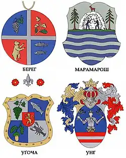 Coat of arms of four counties of Kingdom of Hungary in Carpathian (Bereg, Máramaros, Ugocsa, Ung)