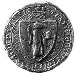 The Munich coat of arms is verifiable from seals in 1239 and 1268. These seals show a monk in a gate, above which is an eagle, referring to the Bishop of Freising.[1] The city belonged to him and this was probably derived from his coat of arms.[3] From 1313, the city was in possession of the Wittelsbach Dukes and the eagle was replaced with a lion,[3] a symbol of the old Bavarian and Palatine Wittelsbachs since the Fiefdom of Duke Ludwig in 1214.[6]