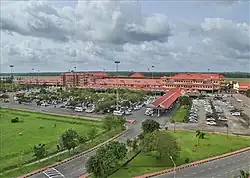 Cochin International Airport (IATA: COK, ICAO: VOCI), popularly known as Kochi International Airport or Nedumbassery Airport, is an international airport serving the city of Kochi, Kerala, in southwestern India. It is located at Nedumbassery, about 25 km (16 mi) northeast of the city center. The airport is the first of its kind to be developed under a public-private partnership (PPP) model in India. This project was funded by nearly 10,000 non-resident Indians from 32 countries.[4] It is the busiest and largest airport in the state of Kerala. As of 2024, the airport caters to more than 63% of the total air passenger traffic in Kerala.[5] It is the fifth-busiest airport in India in terms of international traffic,[6] and the eighth-busiest overall.